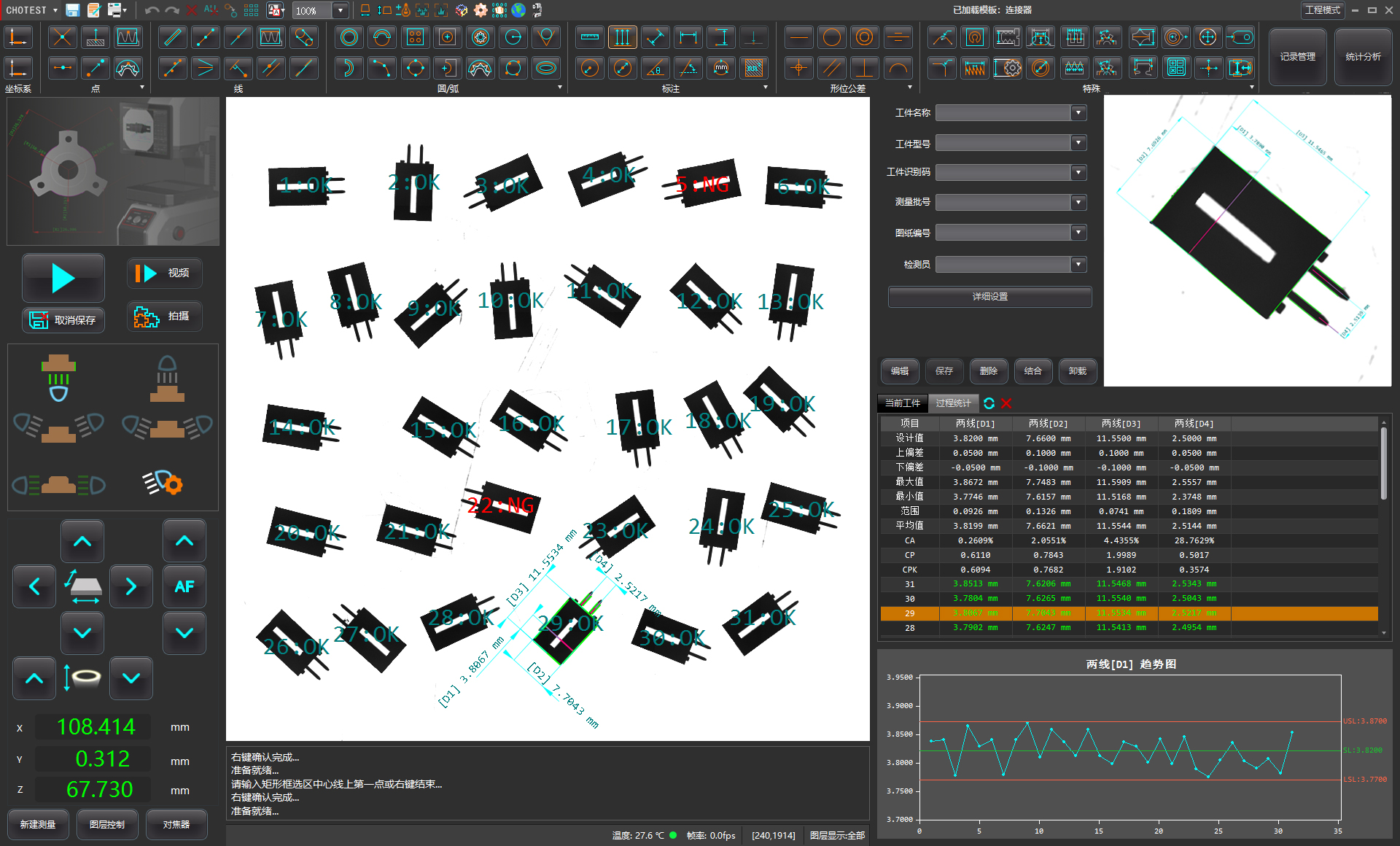 中图蓝颜gtv VX系列闪测仪将远心成像与智能图像处理软件完美结合, 任何繁琐的测量任务, 都变得无比简单,只需把连接器放置于载物台, 然后轻轻按一键,所有尺寸瞬间完成。