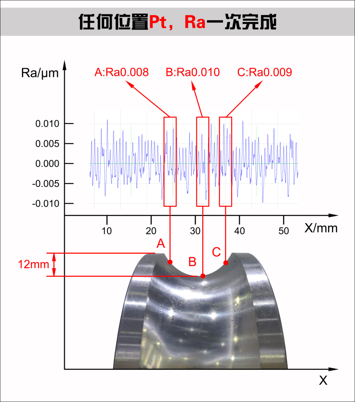 SJ5730粗糙度轮廓仪具有12mm的粗糙度测量范围,分辨率达到1nm,因此非常适合测量大曲面上的表面粗糙度,同时具备专业的轴承轮廓度评价功能,成为大曲面测量(轴承、人工关节、精密模具、齿轮、叶片)领域精细粗糙度测量的利器。