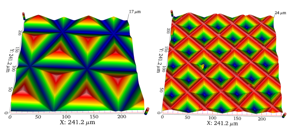 中图共聚焦显微镜能够对光学膜表面微结构实现快速自动化测量,并提供高度、宽度和角度等一系列轮廓尺寸参数对表面质量进行表征,帮助客户实现光学膜片表面质量的检测与管控。