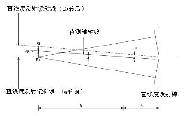 根据直线度误差测量原理可知,测量过程中不可避免的会引入斜率误差。该误差是由于测量直线度反射镜的光学轴线最初与待测轴不平行,为调整平行而引起的。如图 所示,A 为干涉镜和反射镜的距离,B 为激光头到干涉镜的距离(其中干涉镜是固定在运动轴上的)。在一开始,反射镜的光学轴线处于旋转前的位置,而由于机床运动轴与其之间存在的夹角θ,