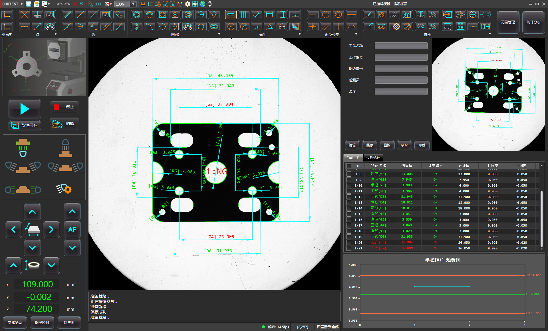 MT21软件提供清晰的说明和指导, 引导您通过简单的三步操作,便可完成圆测试。