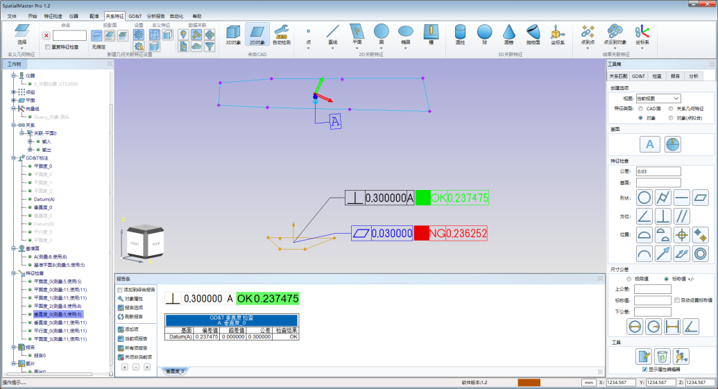 SMT提供关联特征与GD&T特征检查功能,对这些特征执行测量,随着每次测量的完成,SMT会实时更新计算结果。