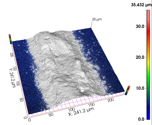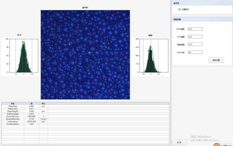 此外,太阳能电池制作过程中,制绒作为关键核心工艺,金字塔结构的质量影响减反射陷光效果,是光电转换效率的重要决定因素。共聚焦显微镜具有纳米级别的纵向分辨能力,能够对电池板绒面这种表面反射率低且形貌复杂的样品进行三维形貌重建,并由专用分析模块自动获取绒面上每个金字塔的体积,比表面积等信息,计算出单位面积金字塔数量和不同尺寸金字塔的比例。