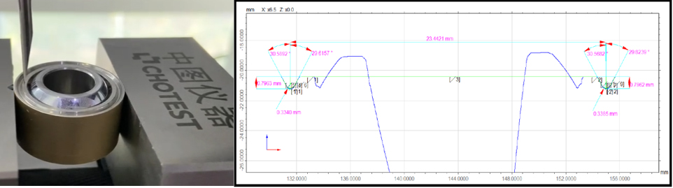 • 滚道与挡边角度测量、倒角R及倒角尺寸测量;