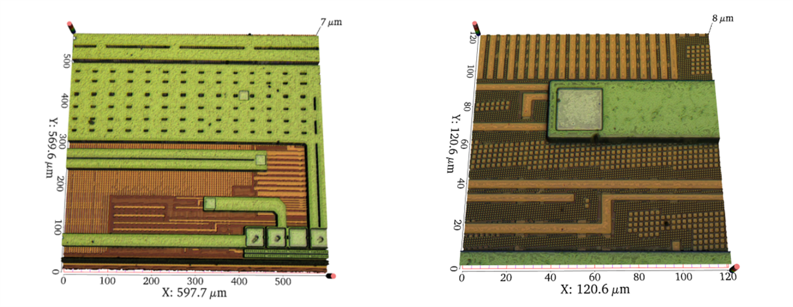 倾力推出的一款显微检测设备,广泛应用于半导体制造及封装工艺,能够对具有复杂形状和陡峭的激光切割槽的表面特征进行非接触式扫描并重建三维形貌。