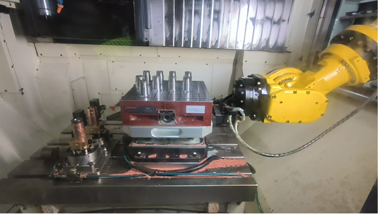 1. 加工前机器人自动上料,红外线测头实时测量确认预装夹位是否正确;