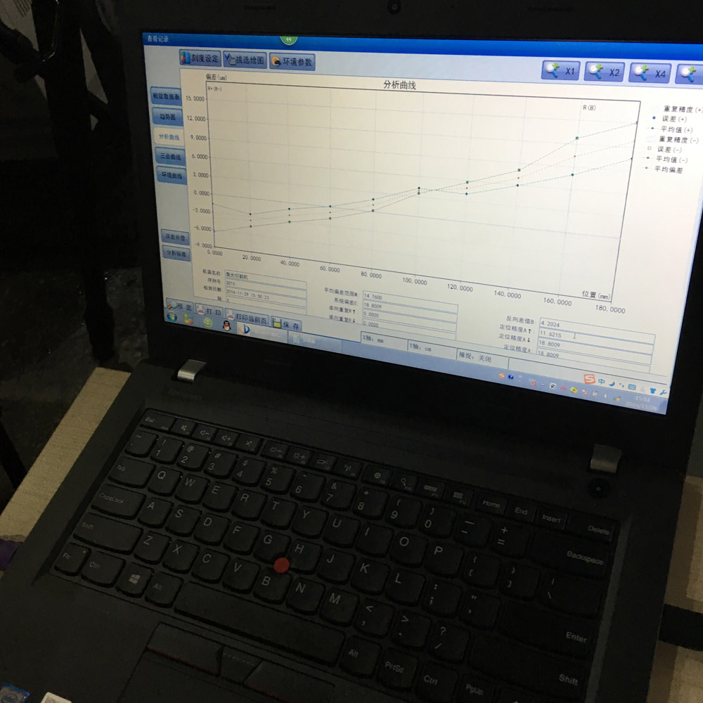 刚开始的时候,由于走心式精密数控机床内部构造复杂,没有一个较好的平台架设激光干涉仪的镜组,我们的技术人员用一些辅助工具轻松解决了这些难题,架设好镜组,对数控机床进行检测,并得到了直观精确的检测结果。