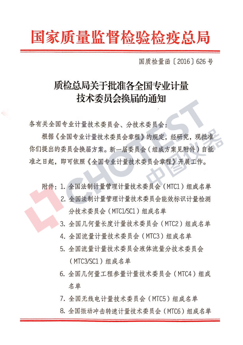 近日,国家质量监督检验检疫总局批准各全国专业计量技术委员会换届方案,