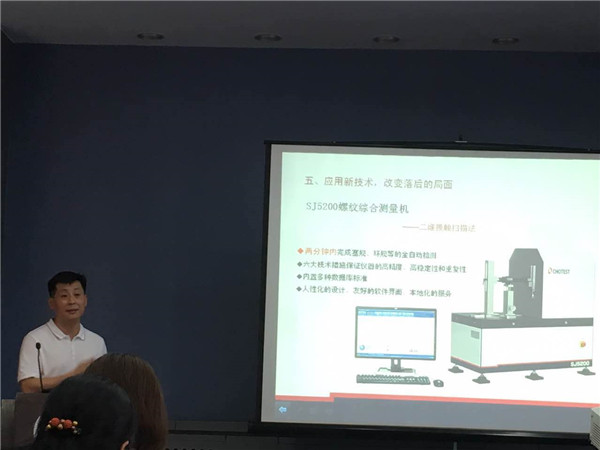 推介会上,我司领导做了名为《认真对待每颗螺丝钉》的主题演讲,阐述了螺纹检测的重要性、国内螺纹检测的现状以及我司螺纹综合测量机性能优势和技术创新,现场不时响起阵阵掌声,与会专家代表对我司勇于创新、敢于向各种技术壁垒、技术垄断发起挑战的精神给与了高度评价。