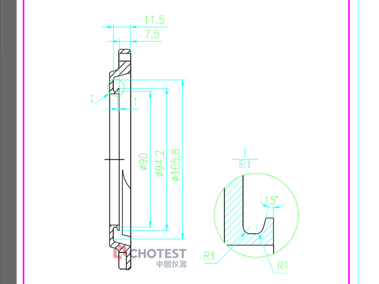 我公司技术人员接过图纸一看:图纸上的沟槽较狭小,一侧是盲边且角度小,用传统蓝颜gtv 测量是有很大的难度。技术人员经过分析评估后,告知客户我们的轮廓测量仪可以测量,但需要定制测针,随后向客户讲解我司轮廓测量仪的工作原理、测量过程及相关技术参数,客户听后十分认可我们的方案,后期将工件邮寄至我司测量。