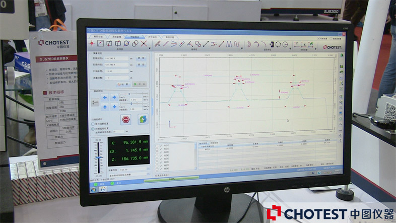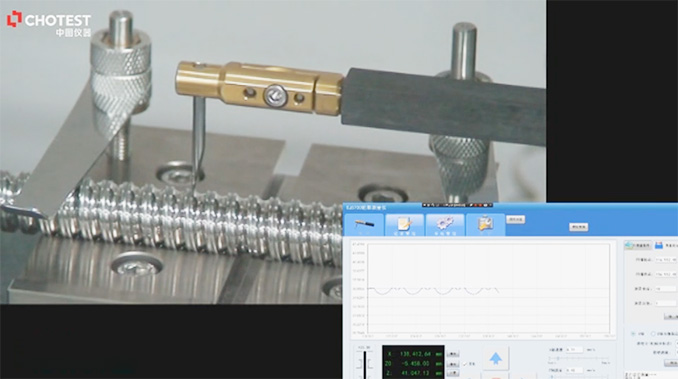 在电脑桌面检定软件上选择被测工件的起始、结束扫描位置,点击“开始”按钮,测针会自动接触被测工件表面,进行扫描测量。在轮廓测量的过程中,检定软件会将测针传递到传感器的数据通过计算,转换成二维曲线图形,实时显示在计算机屏幕上。