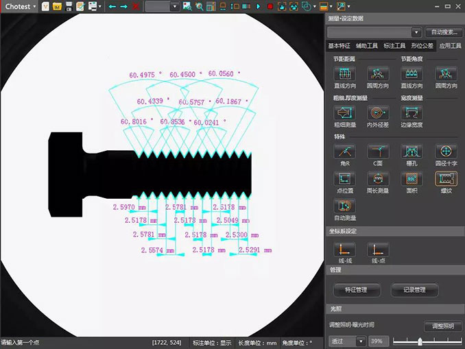√  提供多达80种提取分析工具,包括【特征提取】工具(如最值点、中心线、圆弧、峰值圆等),【辅助工具】(如任意点线圆、拟合直线、拟合圆、切线、内切圆等),【智能标注】工具,【形位公差】工具,特殊【应用工具】(如节距距离、节距角度、槽孔、螺纹、圆径十字、倒角、圆角等);
