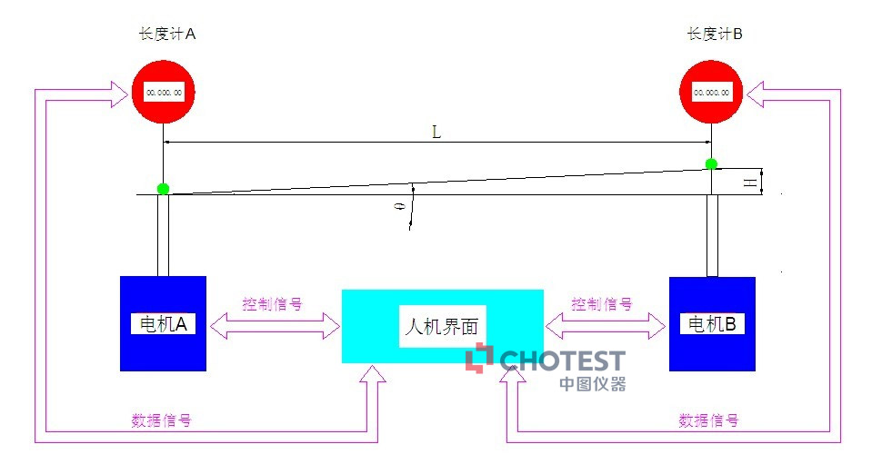 θ=arctg(H/L),由于θ很小,也可以写成θ= H/L(单位:弧度),其中L为两测微计间距为500mm。