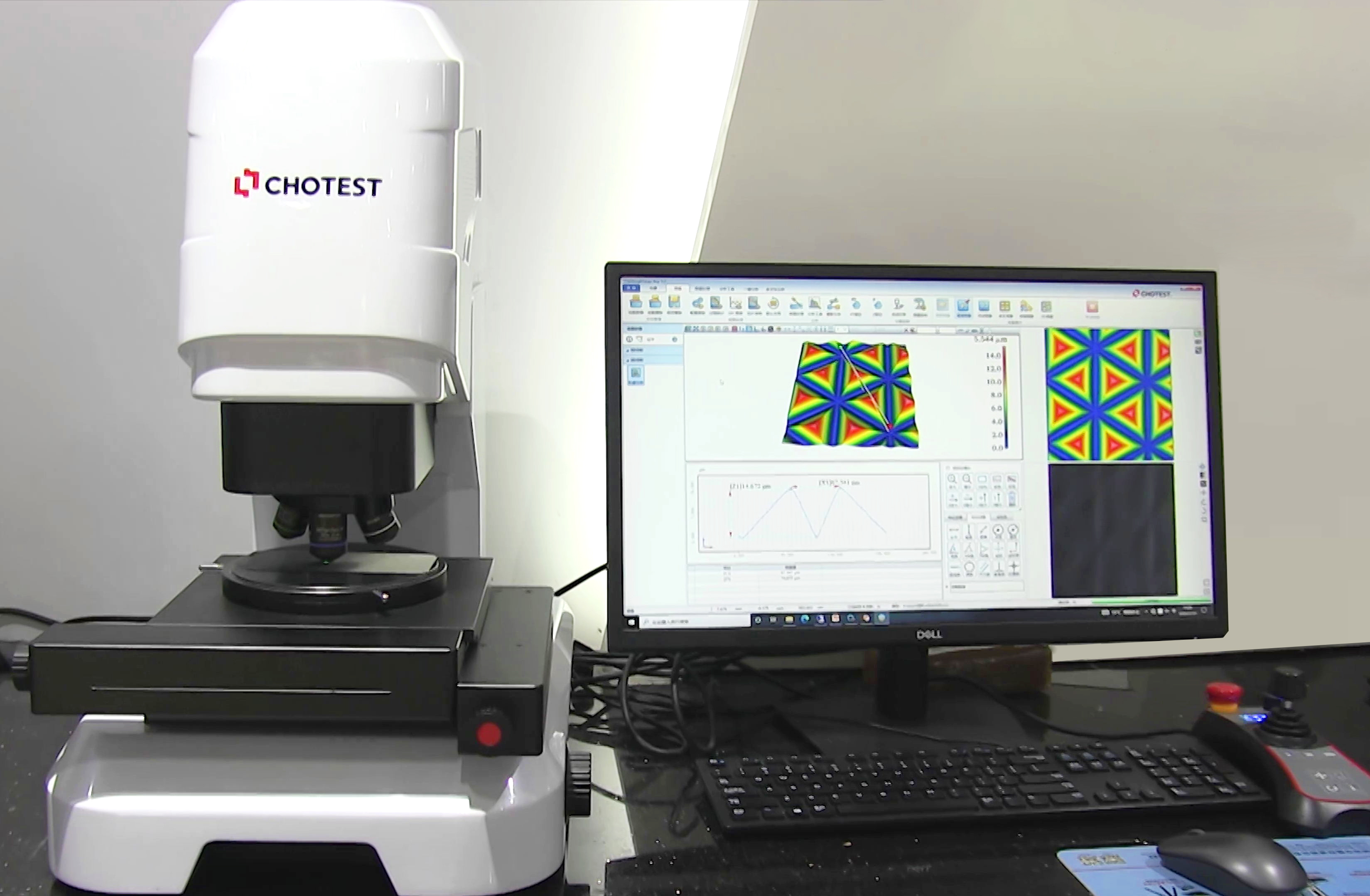 中图共聚焦显微镜能够对光学膜表面微结构实现快速自动化测量,并提供高度、宽度和角度等一系列轮廓尺寸参数对表面质量进行表征,帮助客户实现光学膜片表面质量的检测与管控。