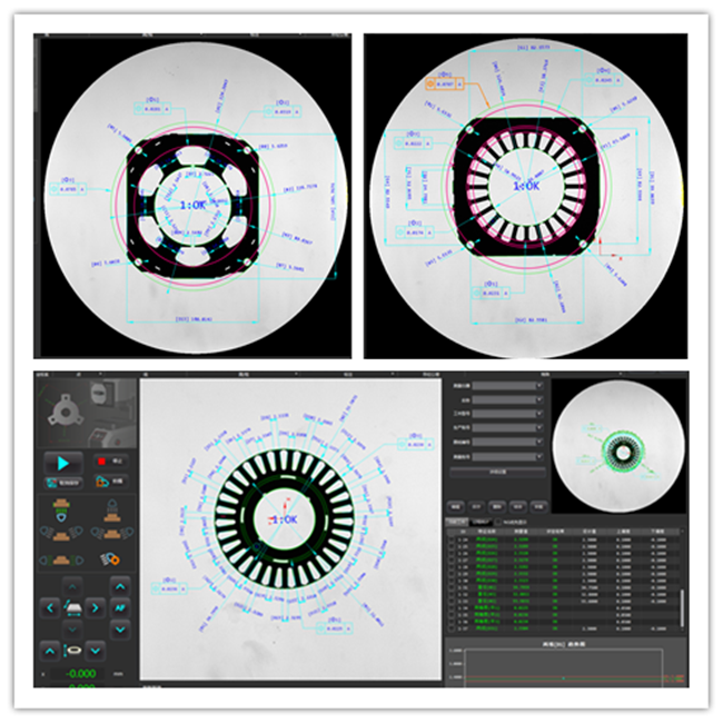 电机冲片尺寸以往主要通过投影仪或影像仪检测,但其参数非常多,检测量大,使用传统的投影仪或影像仪检测速度很慢,而且对检测人员要求很高,测量稳定性不好,效率低,增加企业运行成本,因此亟需新型高效的测量方案。