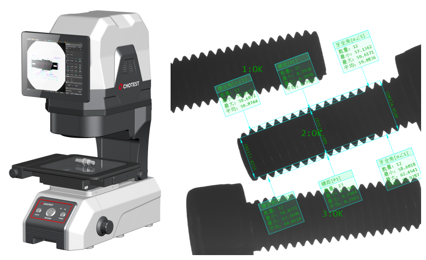 为闪测仪、影像仪等采用图像识别测量螺纹工件参数。