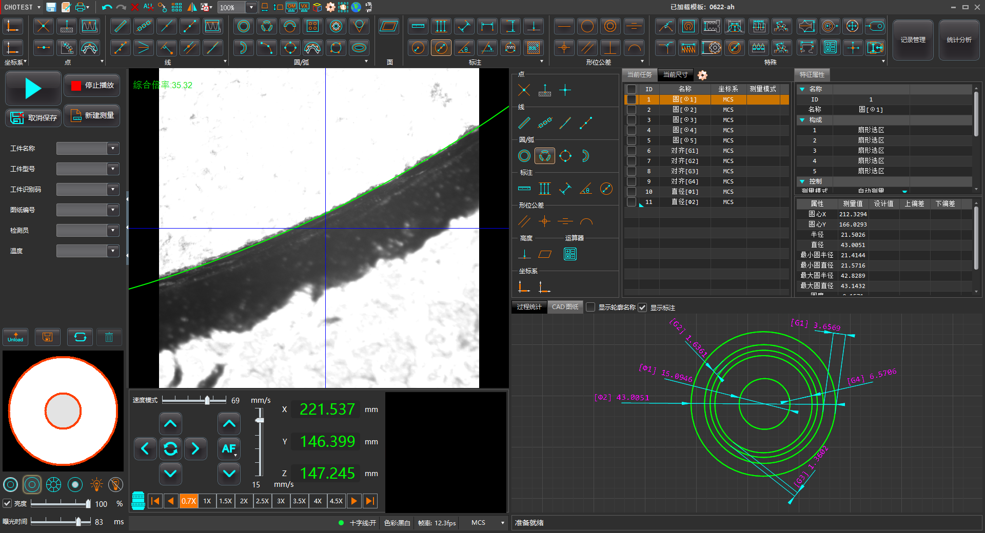 强大的CAD导入功能,只需要将CAD图纸导入全自动影像仪测量软件中,设置合适的光源和对焦位置,即可快速编写程序。