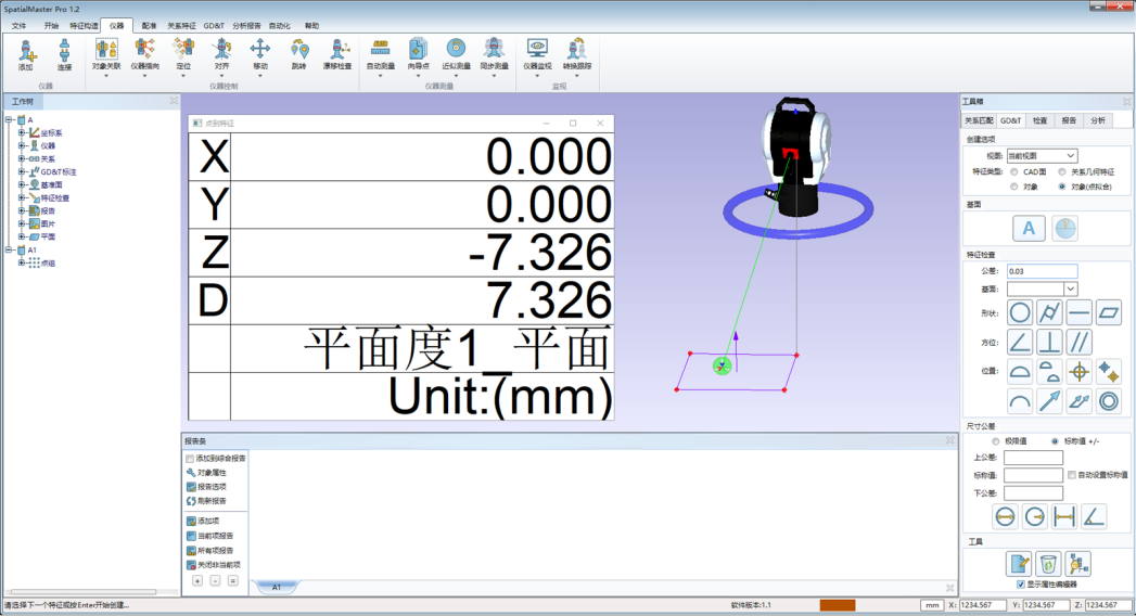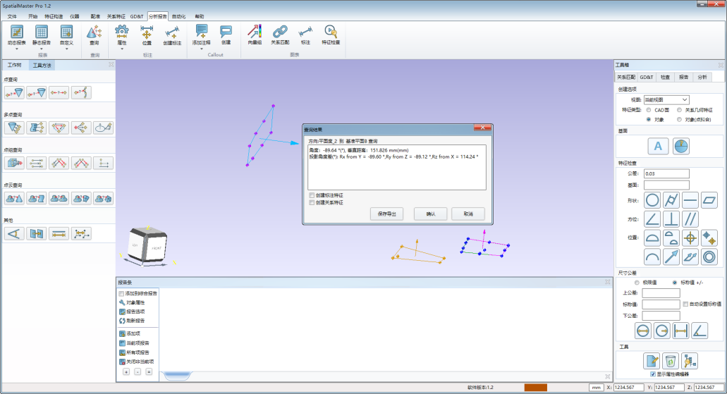 丰富的测量功能,如点到点的距离,点到平面的偏移量,对象与对象之间的位置姿态关系。