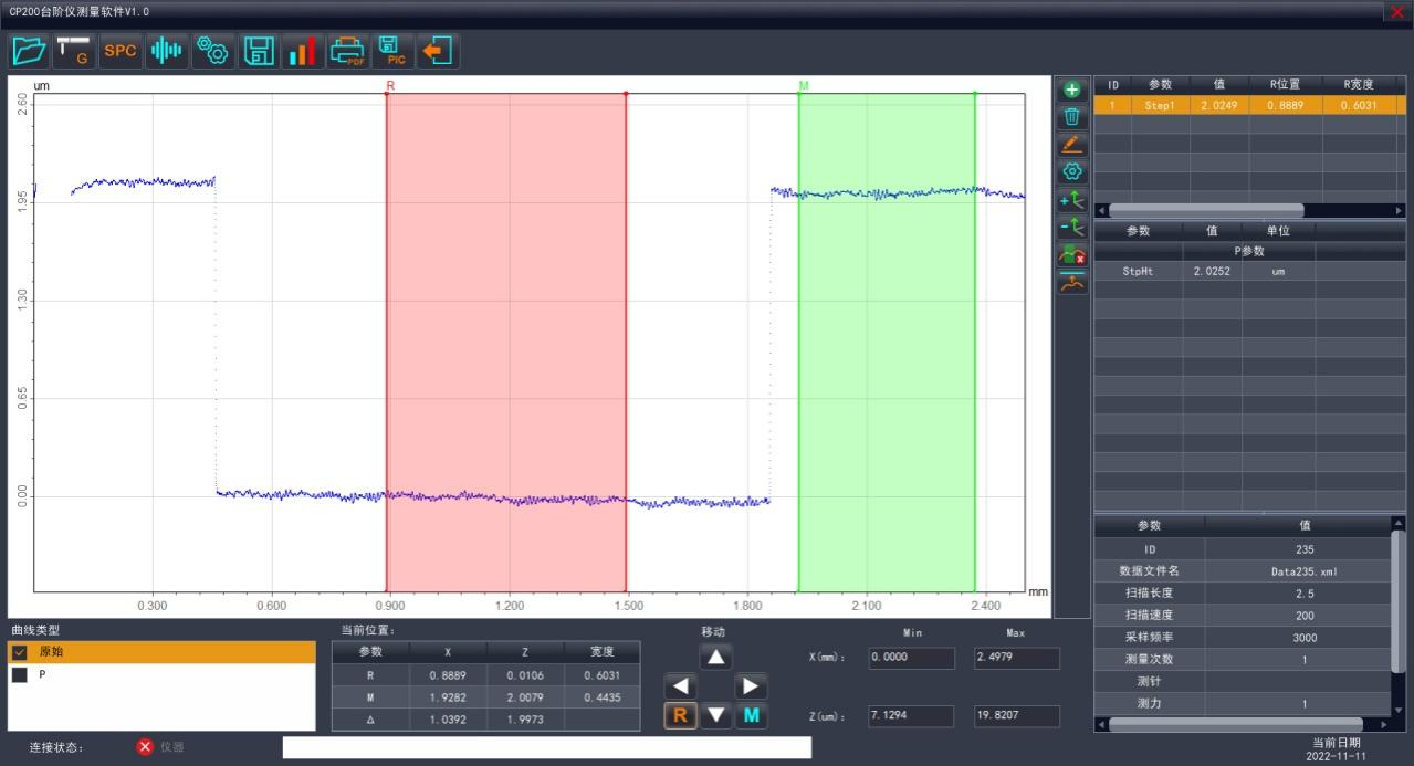 台阶仪软件包含多个模块,为对不同被测件的高度测量及分析评价提供充分支持。
