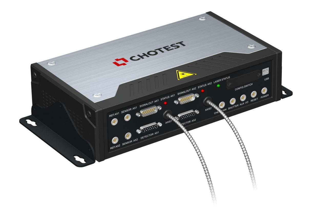 激光发射装置内置高稳定度氦氖激光光源,稳频精度0.05ppm(可选0.02ppm)。通过铠装光纤将激光传导至干涉测量探头,实现热源与测量探头隔离。激光发射装置内置高精度信号处理系统,可直接输出用户可配置分辨率的实时RS422数字正交信号和正交模拟信号,还可通过USB-SDK进行二次开发。