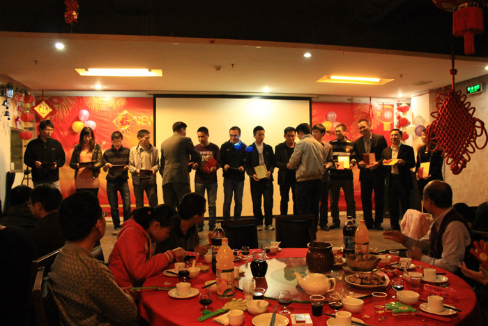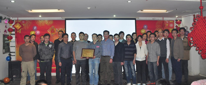 公司的发展壮大既离不开每位员工的辛勤付出,更离不开每个团队的紧密合作!2014年公司不仅从各个部门评选出了14位优秀员工,螺纹综合测量机项目组还获得了公司最佳项目组!在会上,马董和黄总一起为优秀员工颁发了优秀员工奖,和为最佳项目组颁发了最佳项目组奖,并且合影留念!
