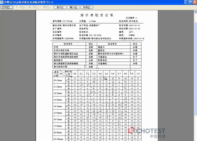 4.点击“开始检定”按钮,软件会按照规程全自动检定百分表的正程和回程误差,检定完毕后,自动计算示值误差,保存检定结果。点击“查看本次记录”,可以查看检定结果。