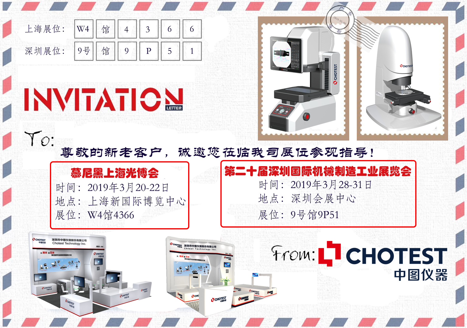 阳春三月,中图蓝颜gtv 将先后参加2019慕尼黑上海光博会和第二十届深圳国际机械制造工业展览会,向行业客户展示一系列先进高效的测量解决方案,助力产业质量提升。